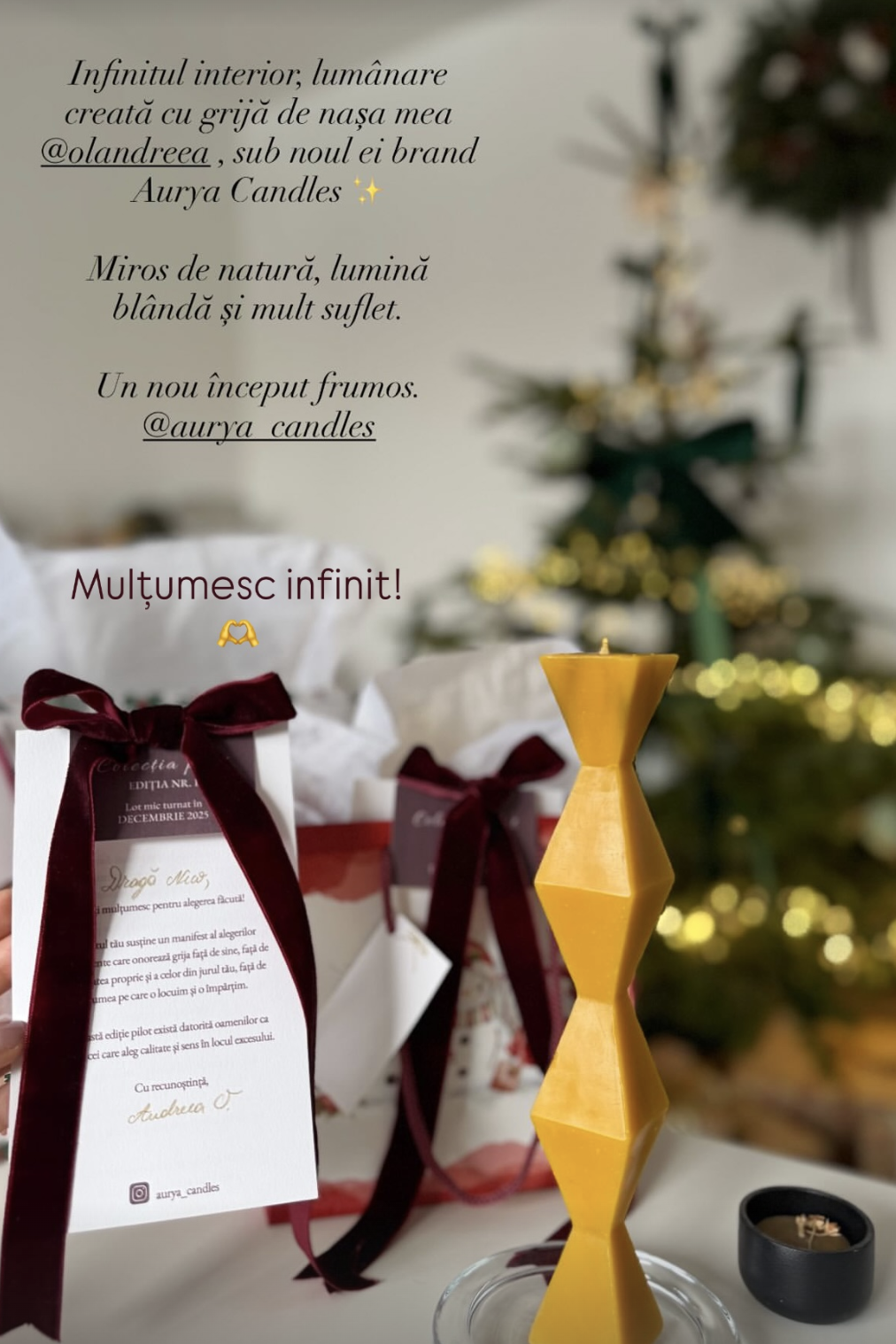 Așa s-a născut AURYA: din pasiunea mea pentru liniștea adusă de lumânări, din ritualul de relaxare prin stupărit al socrului meu și din dorința de a împărți cu alții din ceea ce mi-a oferit mie viața – lumânări din ceară 100% de albine din stupii familiei, cu aromă naturală fină de miere și propolis, pentru momente de liniște și conexiune.